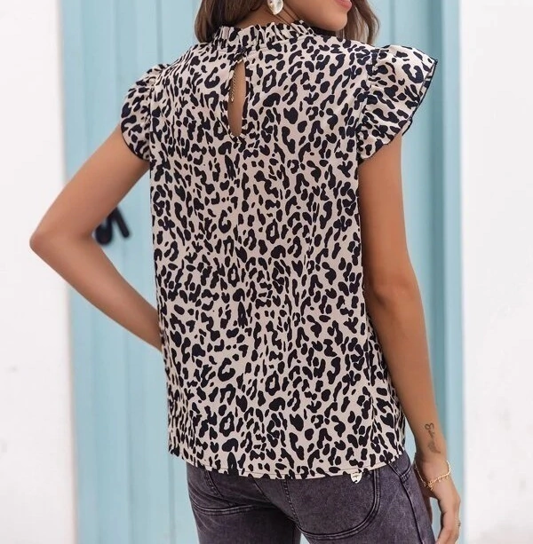 Descripción: Blusa cuello alto con ribete, volante en manga, corte recto, tela no elástica.