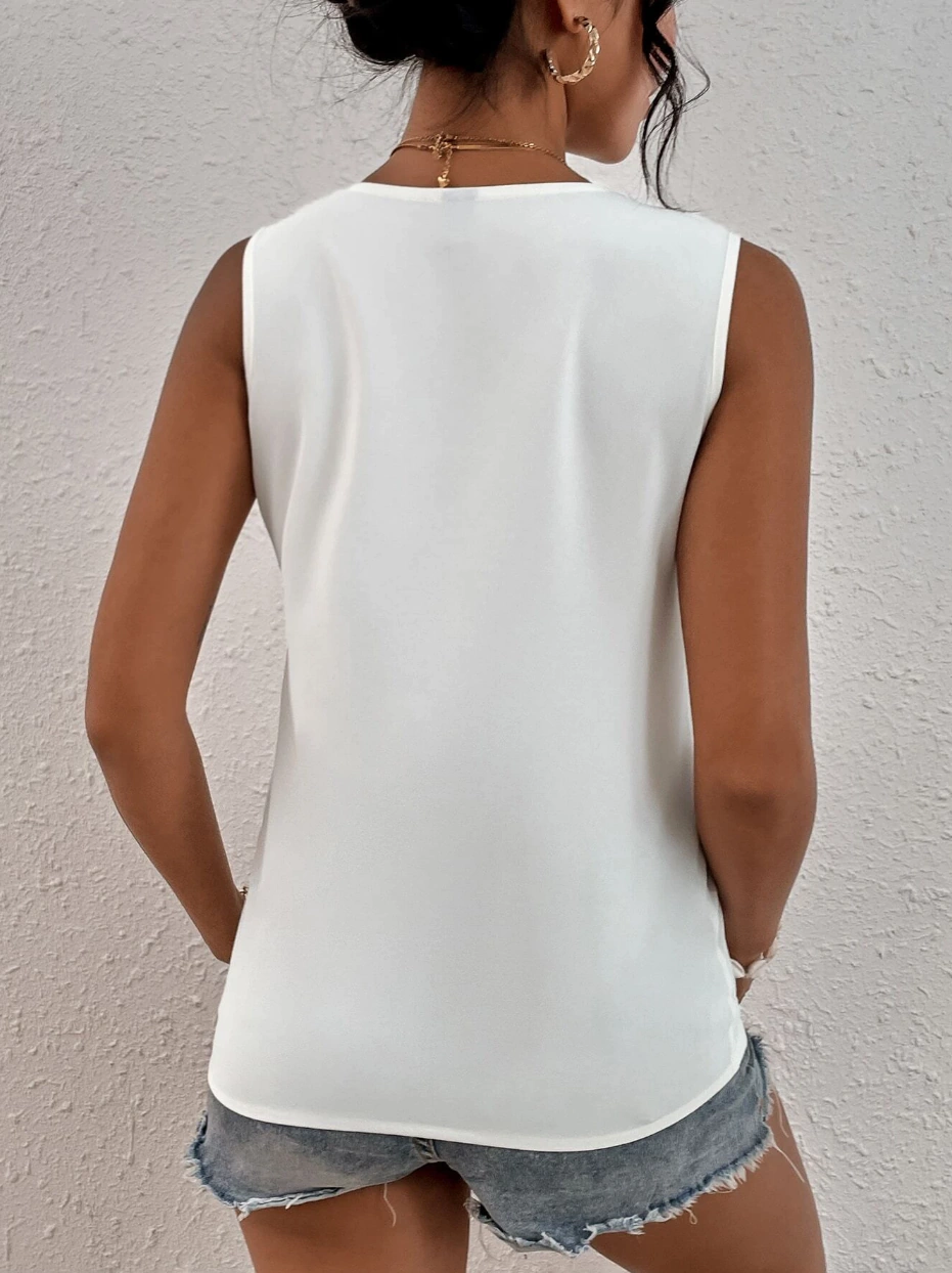 Descripción: Blusa escote V profundo, encaje en contraste, corte recto. Tela no elástica.