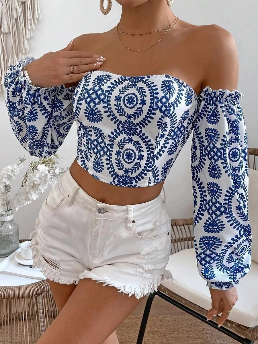 Descripción: Blusa corta hombros descubiertos, espalda hombros y puño con resorte, tela no elástica.