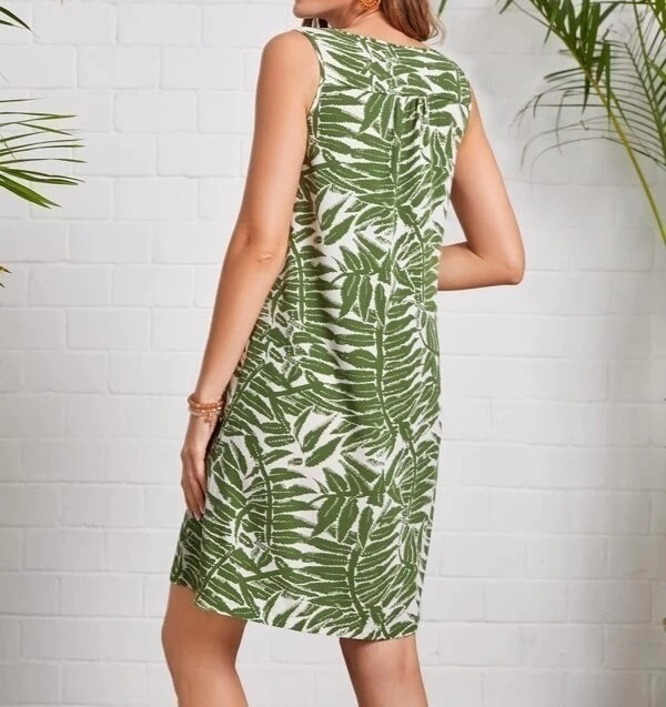 Descripción: Vestido cuello redondo, tipo tunica, corte recto, bolsillos ocultos, tela no elástica.